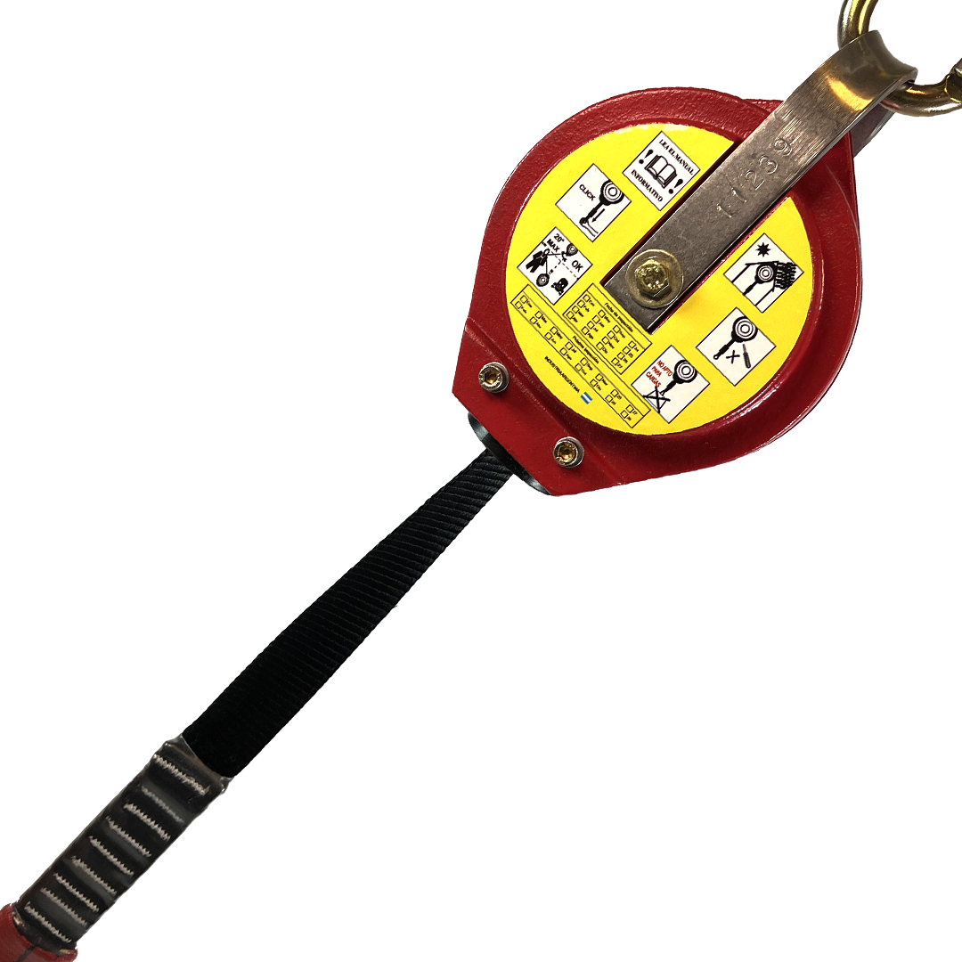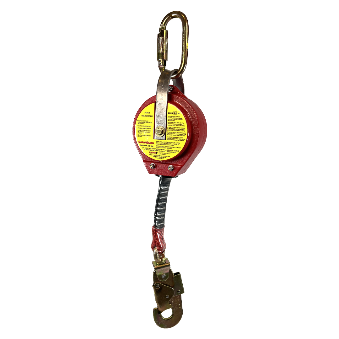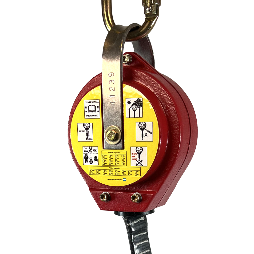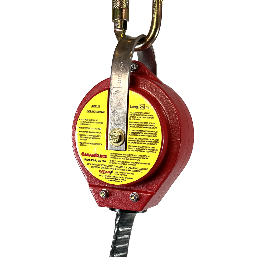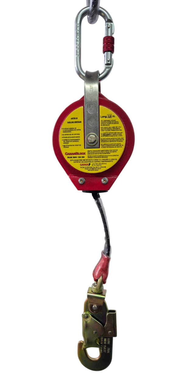 • Dispositivo anticaída con elemento de amarre retráctil de 2,5 m de longitud destinado a facilitar el desplazamiento del usuario en una amplia zona de trabajo brindándole protección contra eventuales caídas de altura. En caso de caída el equipo bloquea por aceleración del elemento de amarre retráctil.