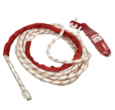 • Contrapeso de acero con funda de tela y protección termo contraíble para tensar la cuerda